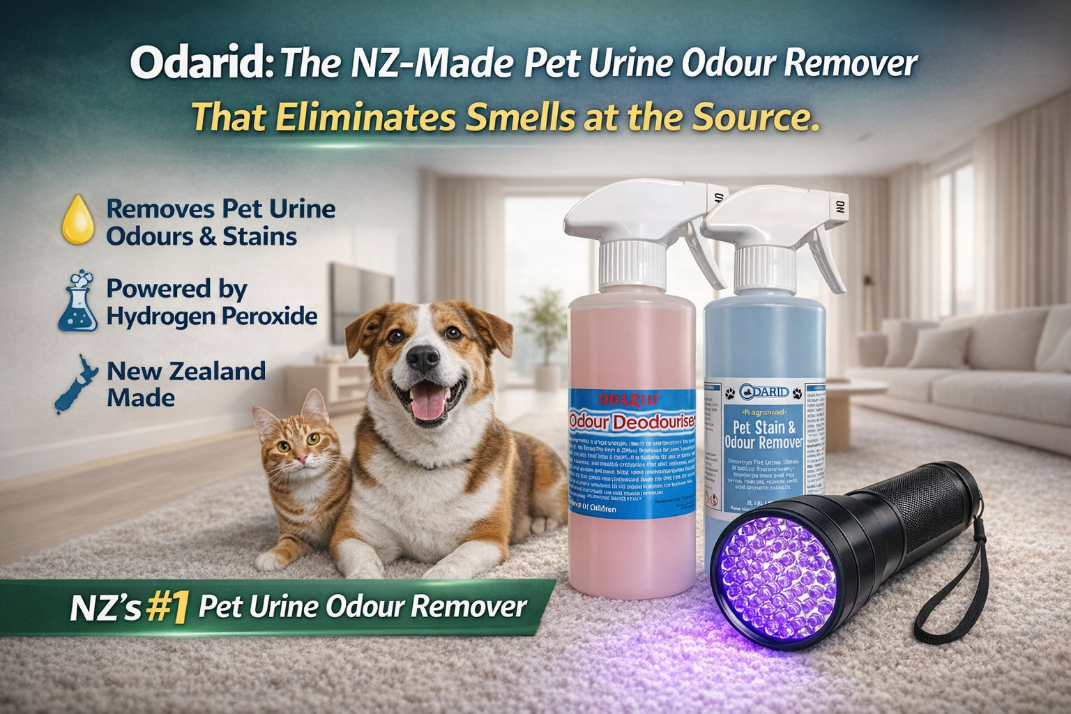 Odarid removes urine stains and odours in just 30 seconds without damaging your belongings. It's an all-purpose cleaner that's gentle to use and doesn't require dilution. Plus, it foams on contact with old urine stains, making it easy to locate the source of the odour.